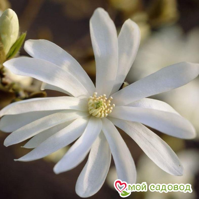 Небольшое дерево до 3 м высотой. За сезон вырастает до 15-16см. Форма — шаровидная. Цвести начинает уже в марте месяце при температуре + 15 градусов и до появления листьев в апреле. Считается самым раннецветущим и морозоустойчивым видом, выдерживает до -30 градусов мороза. Цветки имеют белоснежный или нежно розовый цвет и звездообразную форму.  При подборе места для посадки, стоит учесть, что куст со временем разрастется до 3,5 метров, а часто пересаживать магнолию крайне не рекомендуется. Поэтому заранее отступите от близко расположенных многолетних низко растущих  растений.