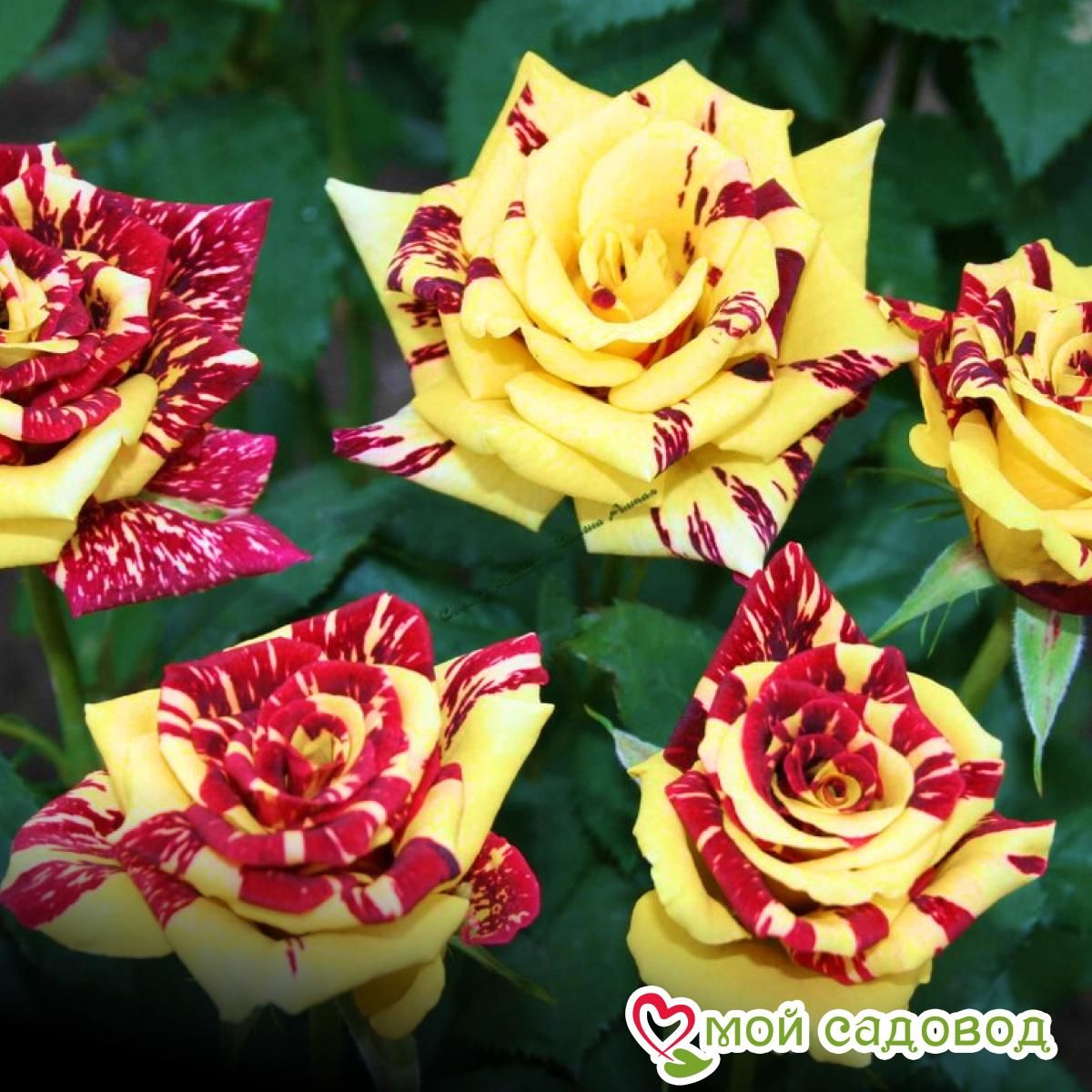 Роза Сим Салабим (Симсалабим, Simsalabim) – результат кропотливого селекционного процесса немецких инженеров-цветоводов агрохолдинга Kordes. Цветок относится к группе чайно-гибридных сортов и был получен в результате соединения ремонтантного гибрида и чайной розы. Гибридный сорт относится к компактным растениям и состоит из прямых отростков. Средняя высота взрослого растения находится в диапазоне от 70 см до 90 см, а диаметр кроны не превышает 60 см. Насыщенно-зеленые листовые пластины имеют средний размер и мелкозубчатые края. Форма цветков напоминает бокал, а их диаметр достигает 10 см. Лепестки насыщенно-лимонных цветов покрыты темно-бордовыми бархатными полосами, вкраплениями и точками. Основная цветовая гамма – желтая, красная. Оттенок бутонов яркий, насыщенный и очень пестрый. В одном цветке формируется около 25 махровых лепестков, раскрытие которых спиралевидное. Цветы благоухают легким, нежным и ненавязчивым ароматом. На одном стебле может сформироваться до 15 цветов, собранных в соцветия. Уход за розами заключается в систематическом рыхлении грунта, удалении сорняков, профилактике заболеваний, подкормке и обрезке. Подкормку роз проводят сезонно: азотом – весной, фосфором и калием – летом. Несмотря на засухоустойчивость, полив роз – процедура обязательная, особенно в жаркие и засушливые периоды. Поливают растения не холодной водой  из расчета на  куст 15-20 л воды, в сухую и теплую погоду – два раза в неделю. К концу лета полив сокращается и прекращается вовсе с наступлением сентября. В первый год допускать раннего цветения молодых растений не следует. Вплоть до начала августа бутоны роз с кустов удаляют. В августе оставляют по 1-2 цветка на каждом побеге и не срезают их, чтобы осенью завязались плоды. Побеги розы в таком случае лучше вызревают, хорошо перезимовывают и на будущий год обильно цветут. 2-летние саженцы ЗКС в мягкой упаковке. Перед упаковкой роз мы проводим обработку корней гидрогелем и пакуем их в обогащенный микроэлементами почвенный субстрат, что обеспечивает жизнеспособность саженцев по пути к вам. До посадки хранить при t 0+2°С. В нашем интернет-магазине вы сможете купить Чайно-гибридные розы Так же возможно вас заинтересуют Роза Версилия и Роза Геральдина