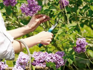 Уход за сиренью после посадки в Подмосковье включает своевременную обрезку. Весной состригайте с куста 1/3 от общего объема побегов. С приходом осени понадобится формирующая обрезка. Обязательно прореживайте куст, удаляя ветки, растущие внутрь кроны. Это послужит профилактикой многих болезней.